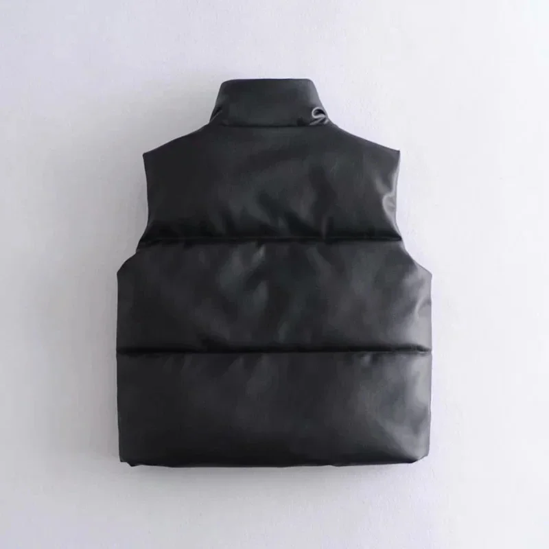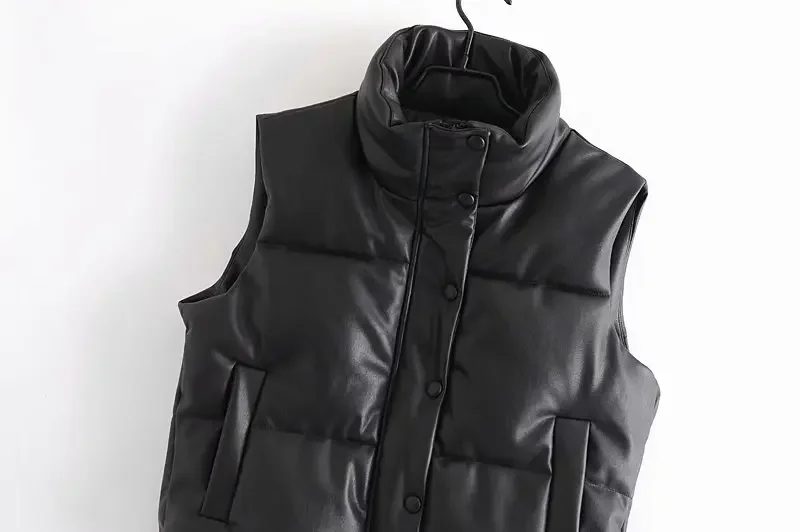 Autumn Winter PU Leather Coat Women Black Stand Collar Vests Women Fashion Zipper Elegant Short Vests Female Ladies