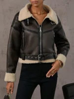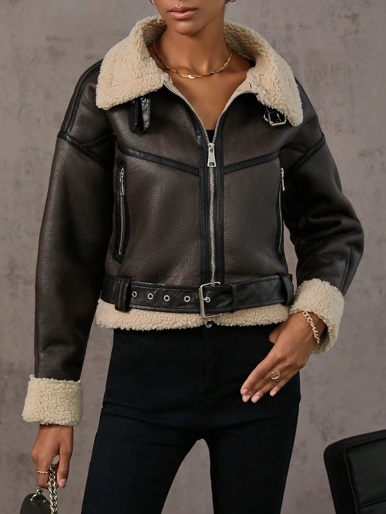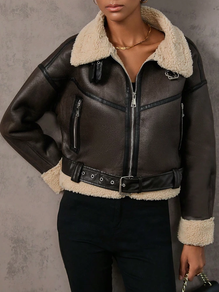 Fitaylor Autumn Winter Women Faux Lambswool Leather Jacket Lady High Street Motorcycle Outwear Casual Leather Coat