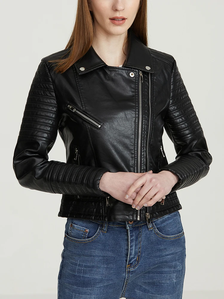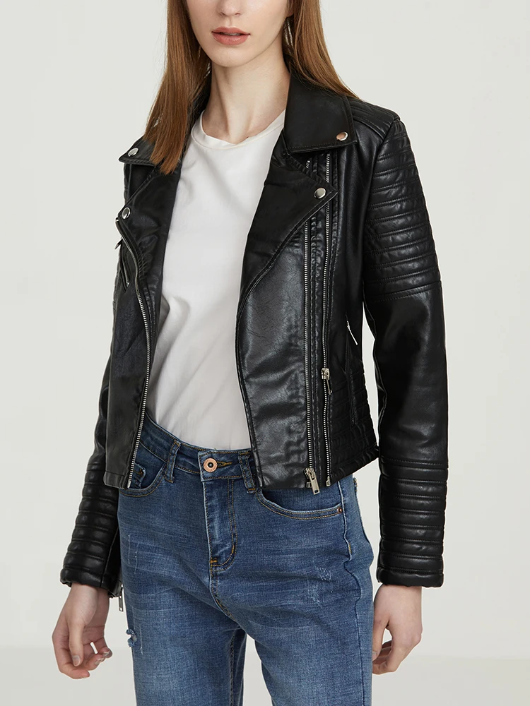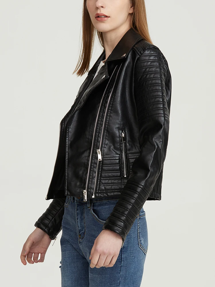 Fitaylor Autumn Women Women Faux PU Leather Jacket Casual Lady Long-sleeve Windproof Waterproof Jacket Motorcycle Streetwear