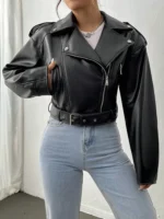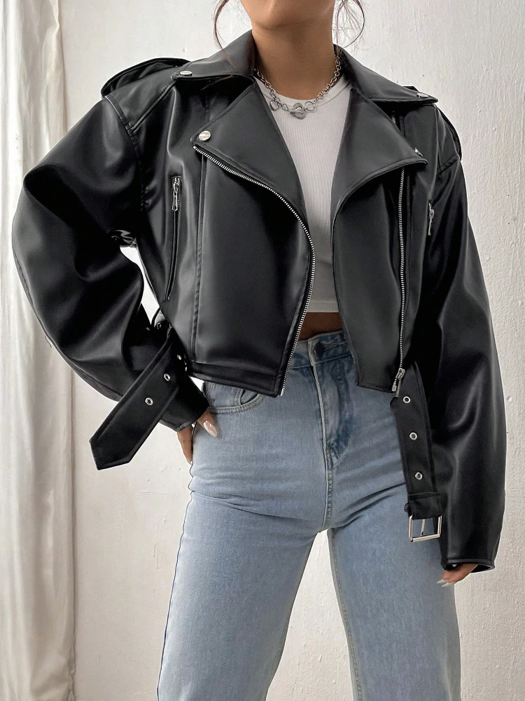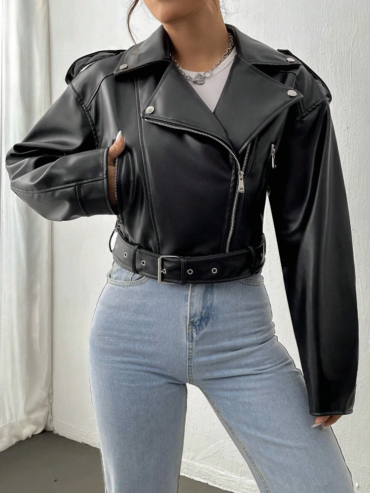 Fitaylor Women Faux PU Leather Jacket Casual Lady Lapel Zipper Jacket Female Motorcycle Leather Coat