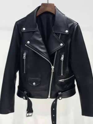 Lady Women Loose Motorcycle Biker Black Pu Faux Leather Jacket with Belt Spring Autumn Female Zipper Coat Outwear