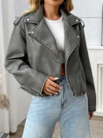 Lady Spring Autumn Women Loose Retro Faux Leather Jacket Streetwear Female Zipper Moto Biker Coat Outwear