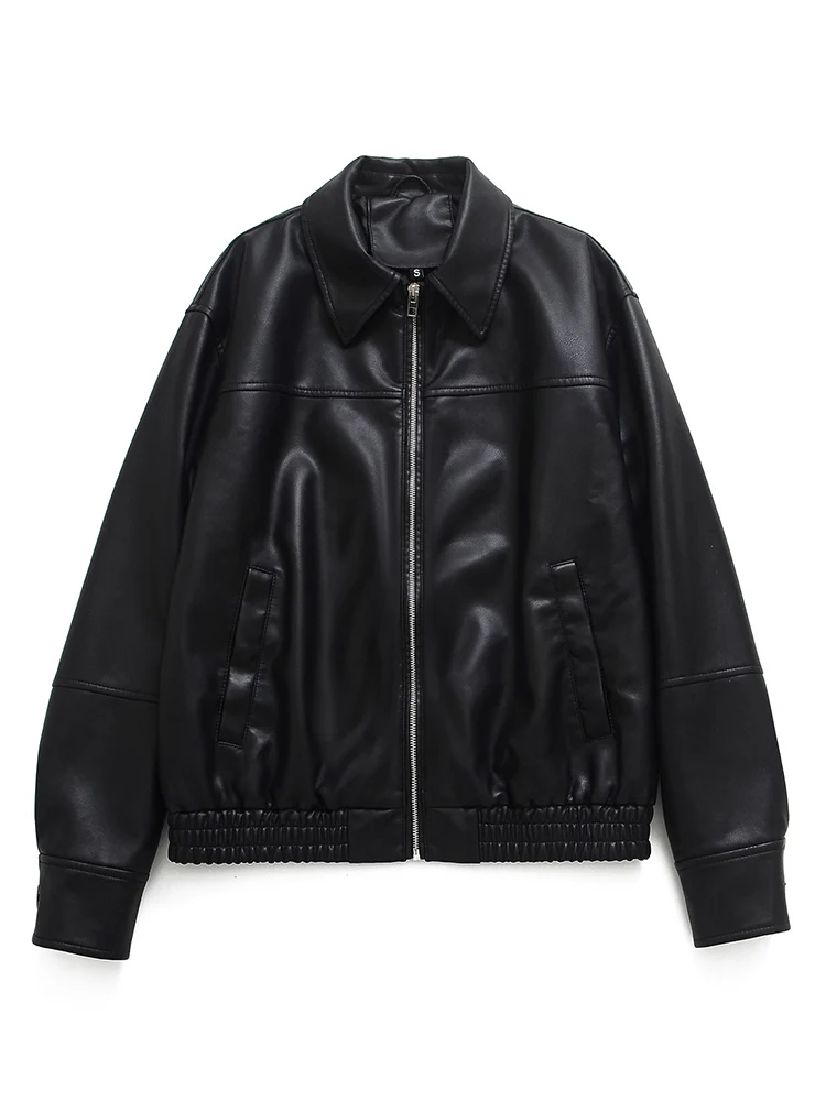 Lady Spring Autumn Women Moto Biker Loose Black Pu Faux Leather Jacket Streetwear Female Zipper Coat Outwear