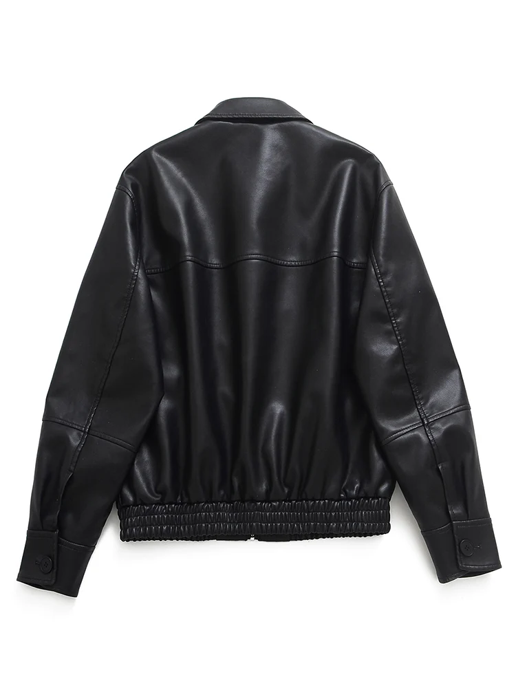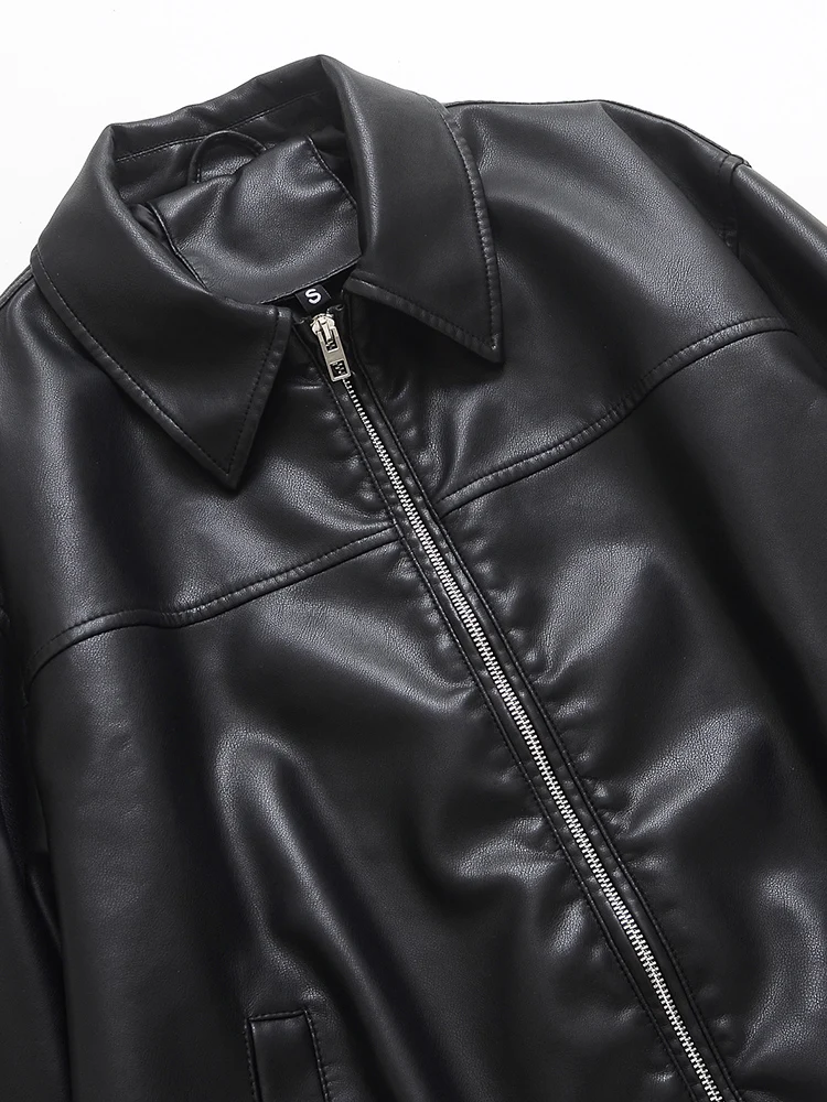 Lady New Women Vintage Loose Faux Leather Jacket Streetwear Female Spring Autumn Female Zipper Coat Outwear