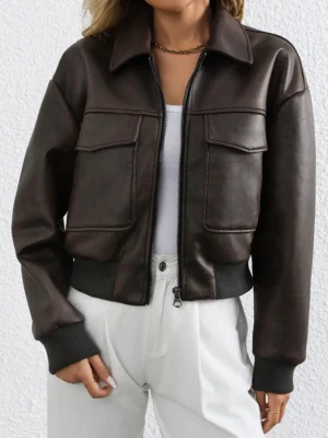 Be the first to review “Lady Spring Autumn Women Retro Loose Pu Faux Leather Jacket Vintage Female Streetwear Zipper Pocket Coat Outwear”