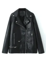 Lady Spring Autumn Women Streetwear Loose Black Pu Faux Leather Jacket Moto Biker Female Zipper Spliced Coat Chic Outwear