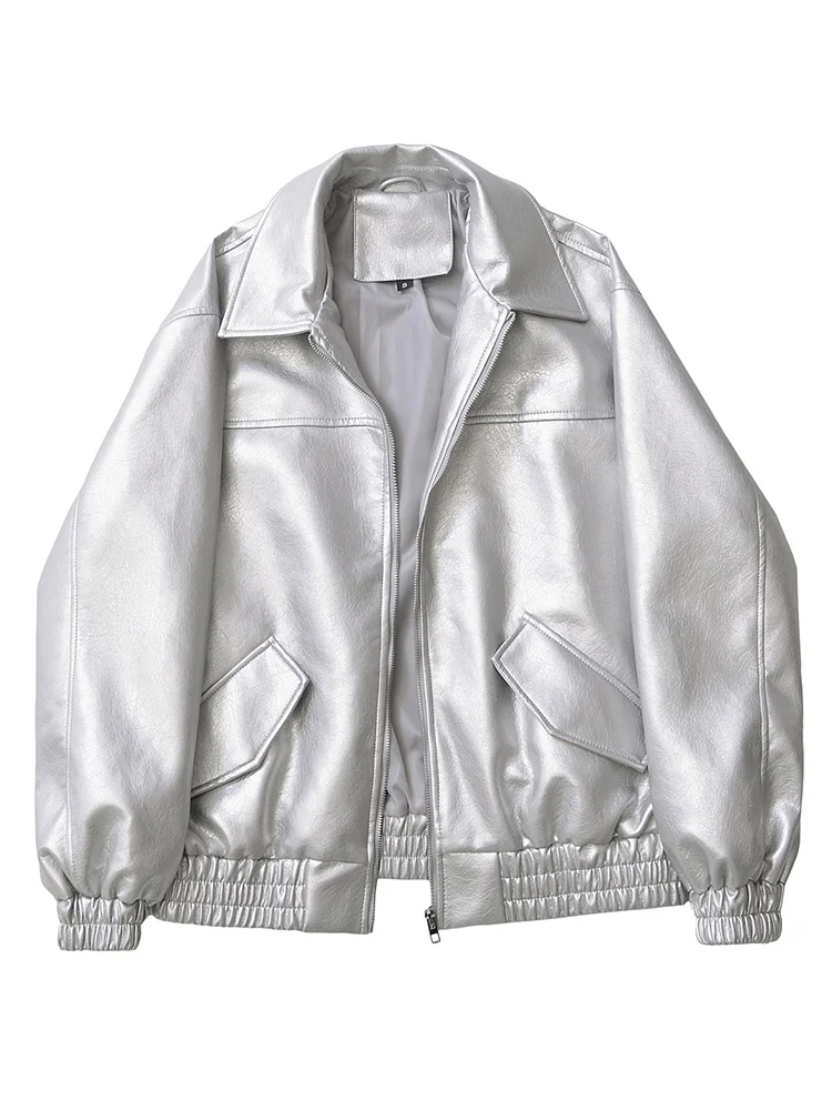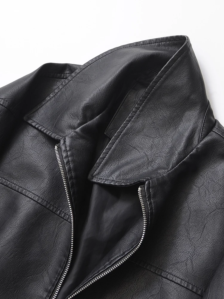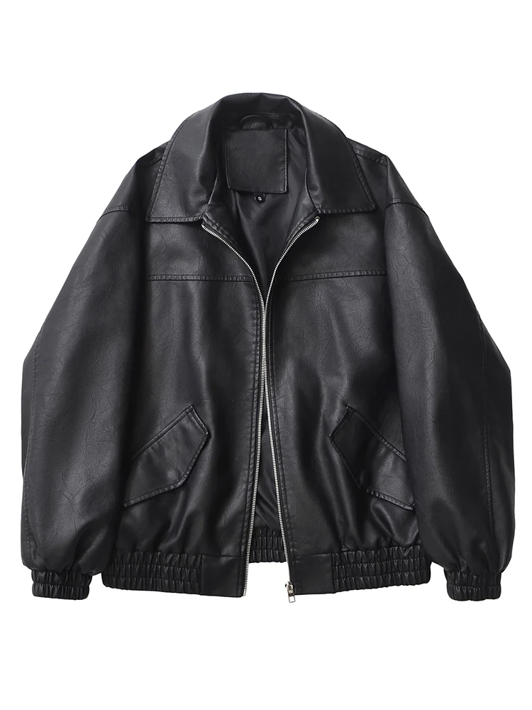 Lady Streetwear Women Retro Loose Short Pu Faux Leather Jacket Spring Autumn Female Zipper Coat Vintage Moto Biker Outwear