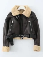 Lady Winter Women Streetwear Faux Lamb Leather Fur Short Jacket with Belt Moto Biker Thick Warm Sheepskin Coat Outwear