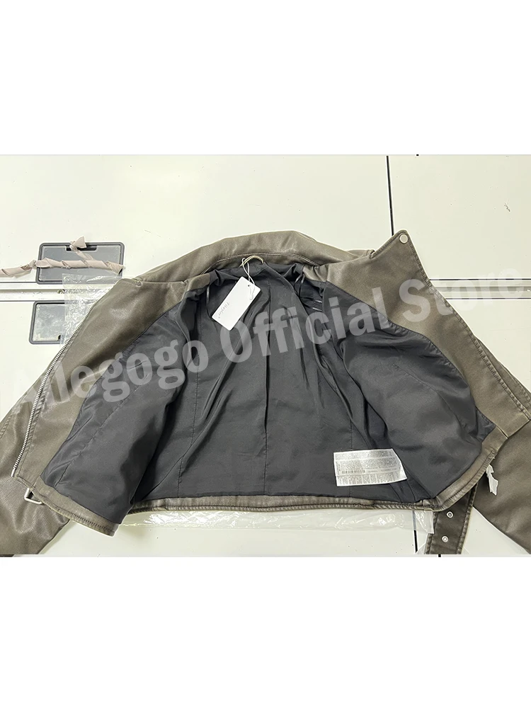 Lady Women Vintage Loose Pu Faux Leather Short Jacket with Belt Streetwear Female Zipper Retro Moto Biker Coat Outwear Tops